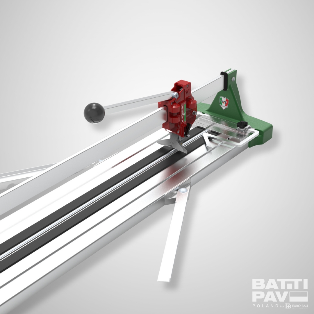 - Boczne rozszerzenia: Maszyna posiada dodatkowe wsporniki, które stabilizują duże formaty płytek, zapobiegając ich uginaniu się podczas nacinania.