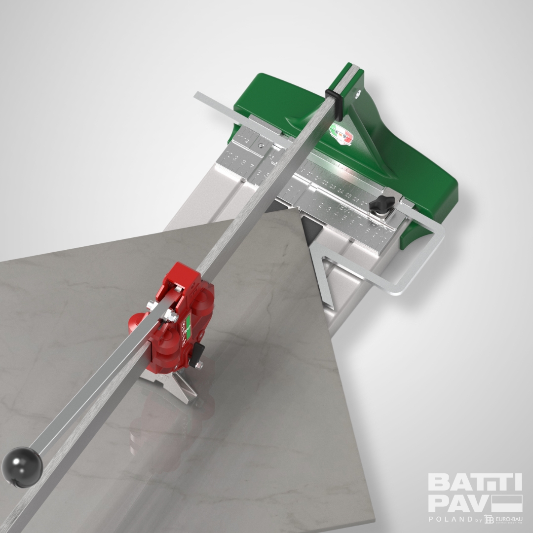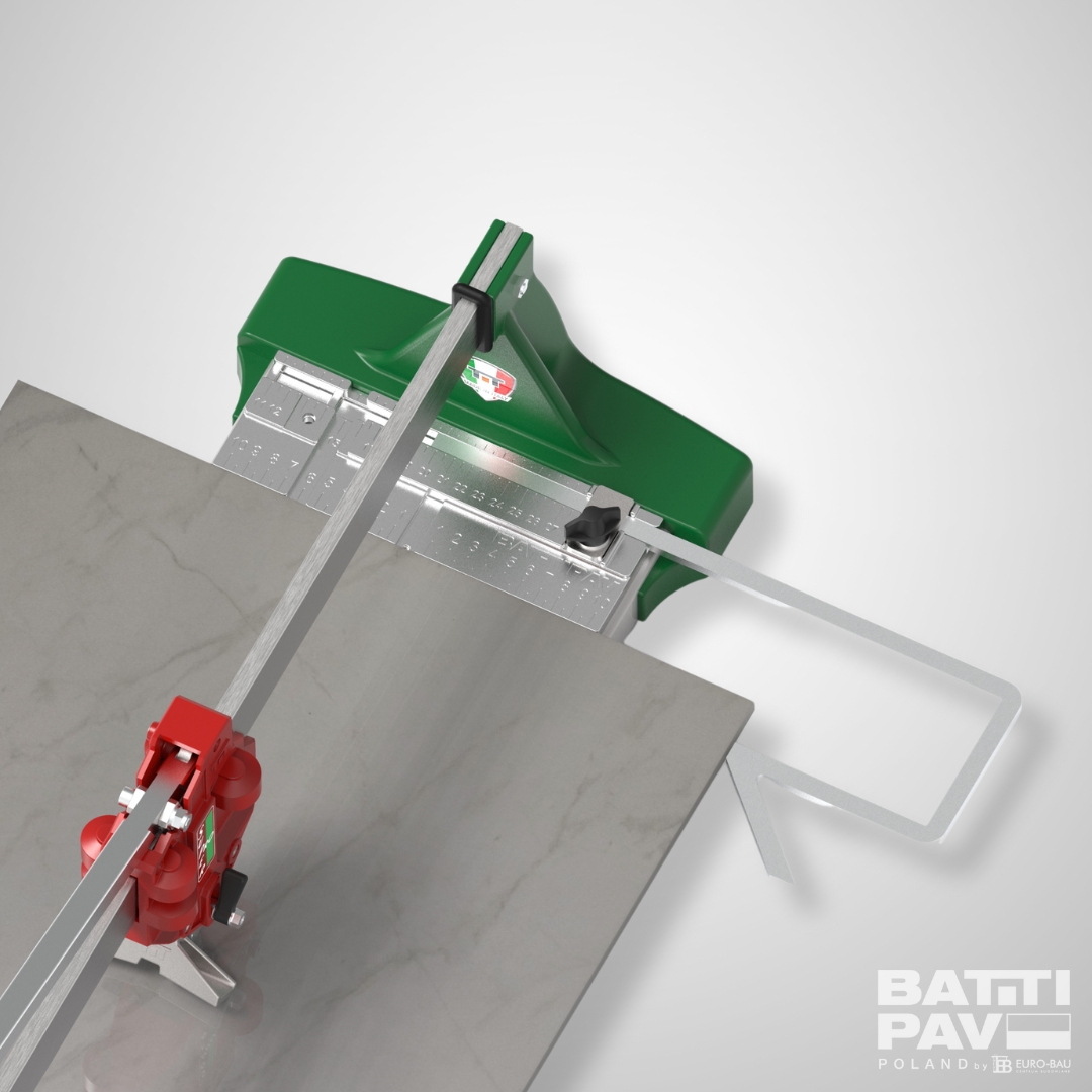 - Cięcie diagonalne: Specjalny przymiar pozwala na cięcie w karo płytek o imponującym formacie aż 884 x 884 mm.
